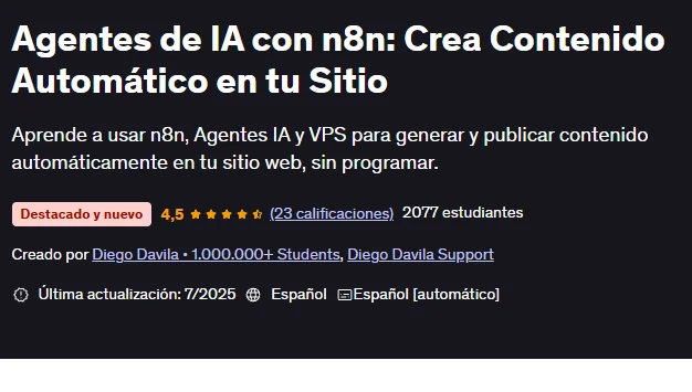Aprende a usar n8n, Agentes IA y VPS para generar y publicar contenido automáticamente en tu sitio web, sin programar.